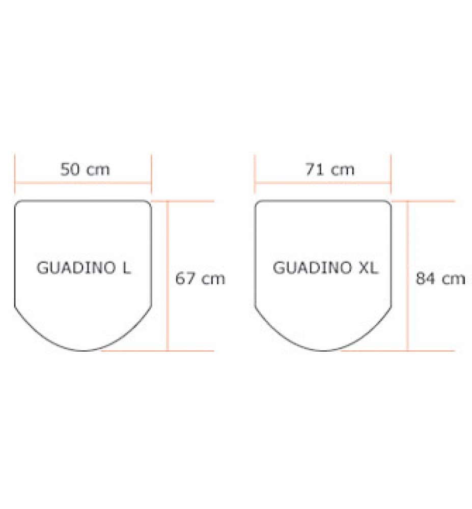 L: apertura testa 50cm, lunghezza testa 65cm.