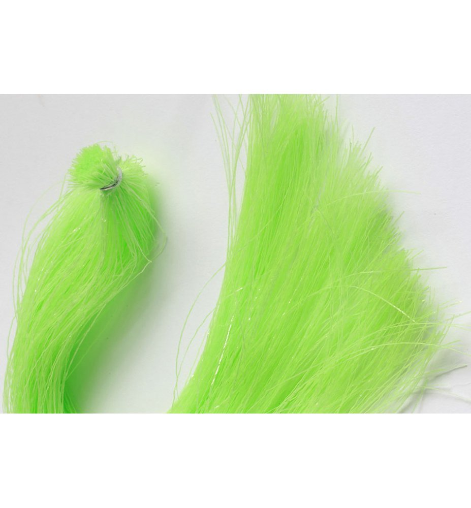 Not only in the dark but even more so in turbid waters the glow effect is known for its effectivity. At night you can simply hit it with a torch or UV-light in order to "carge" the fibers. Very few strands of the material are enough too boost the visibility of your streamers in low light situations. Also great vor nymph bodies and ribbings.